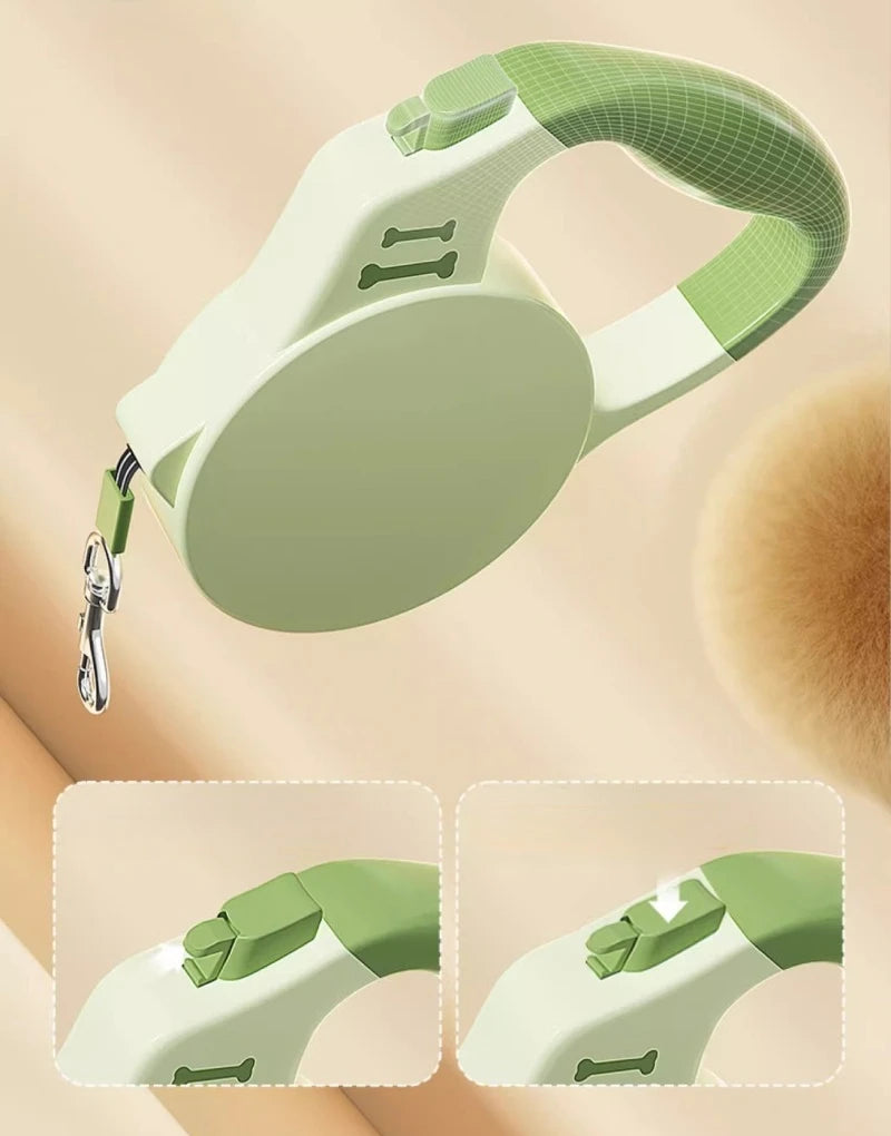 Heavy Duty Retractable Pet Leash: The Pawesome retractable leash offers 3m or 5m of strong, anti-breaking rope, perfect for walking dogs, cats, puppies, and small to large breeds with safety and control.